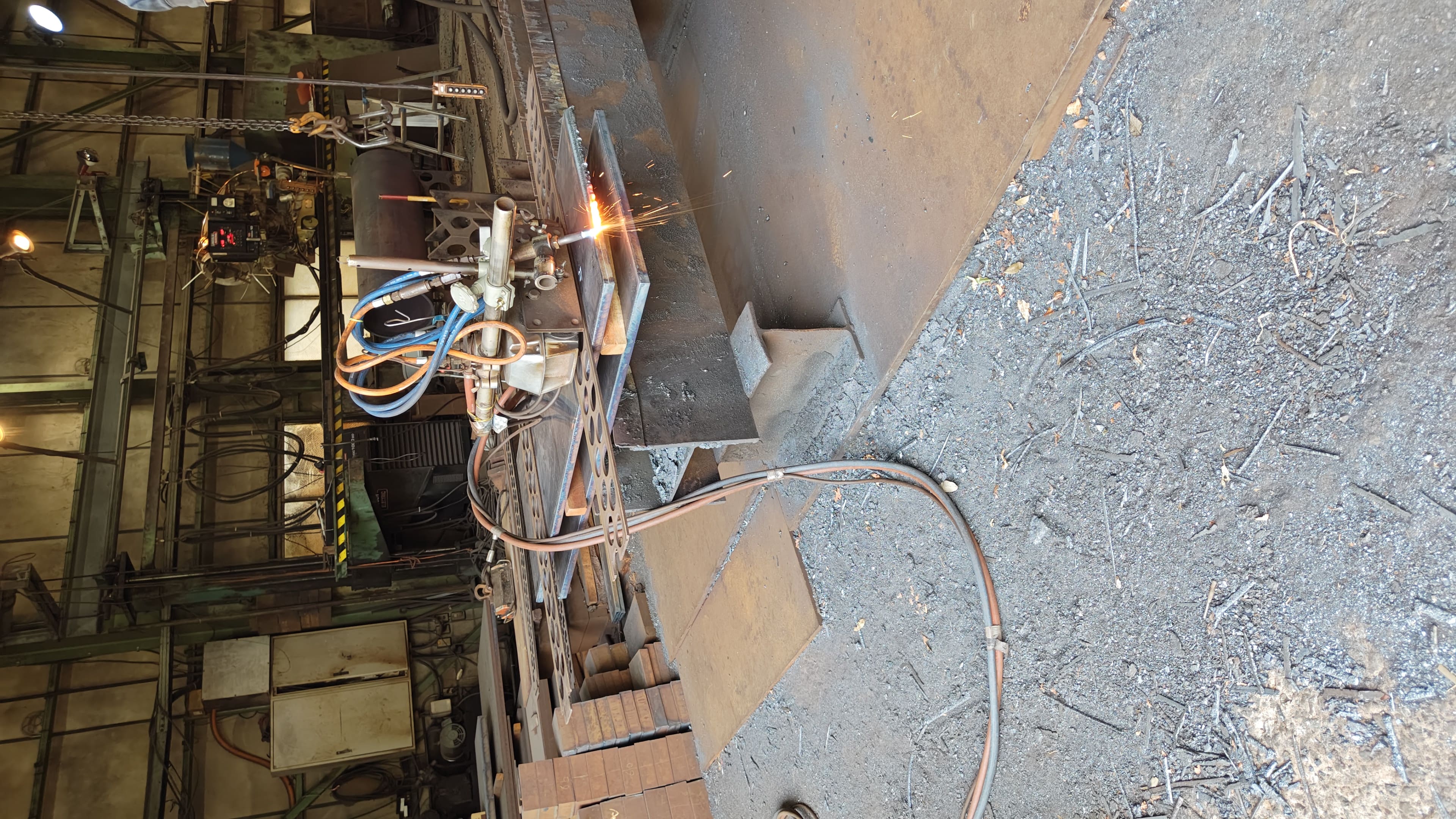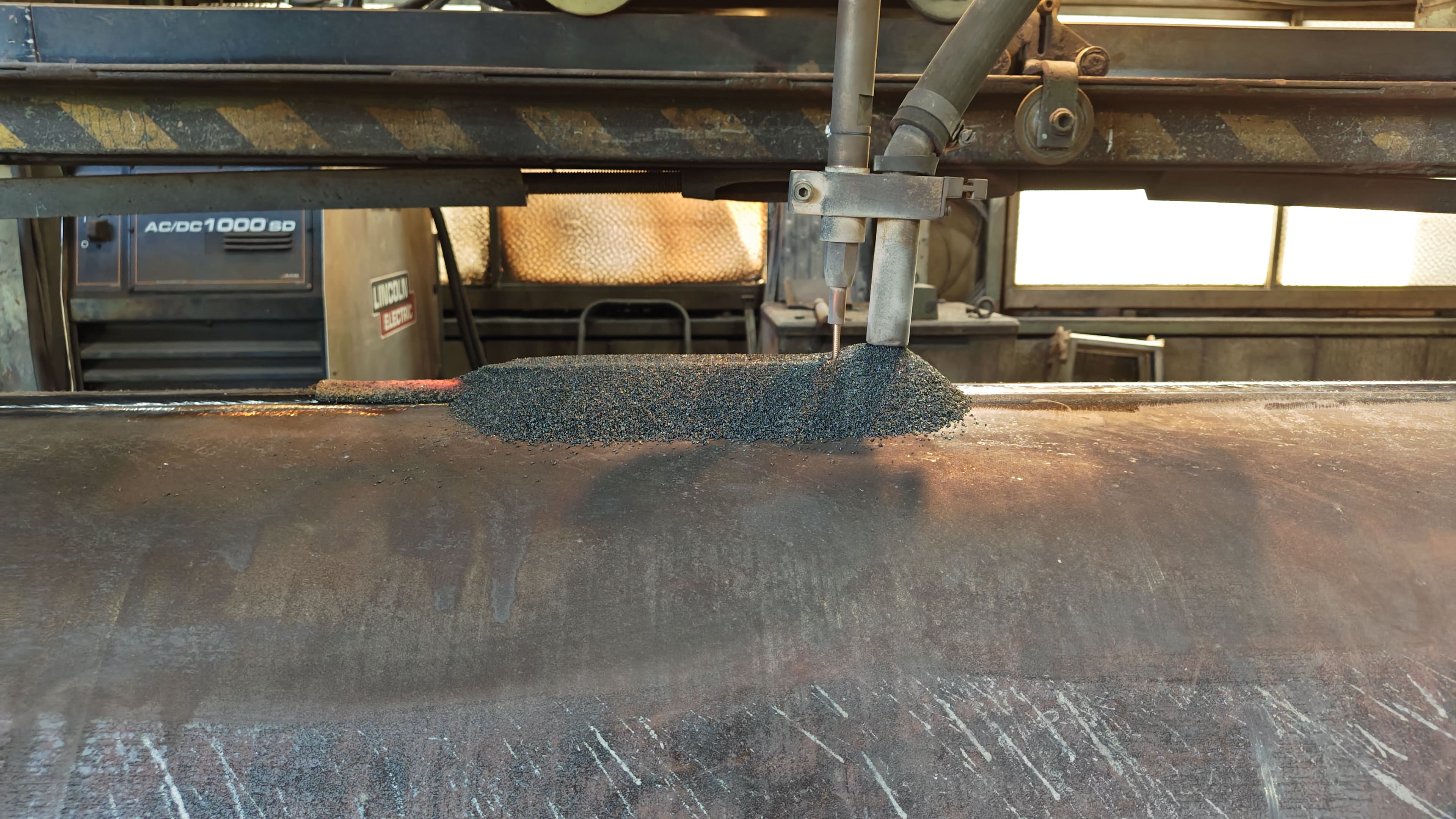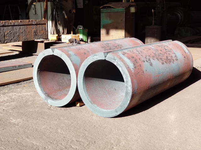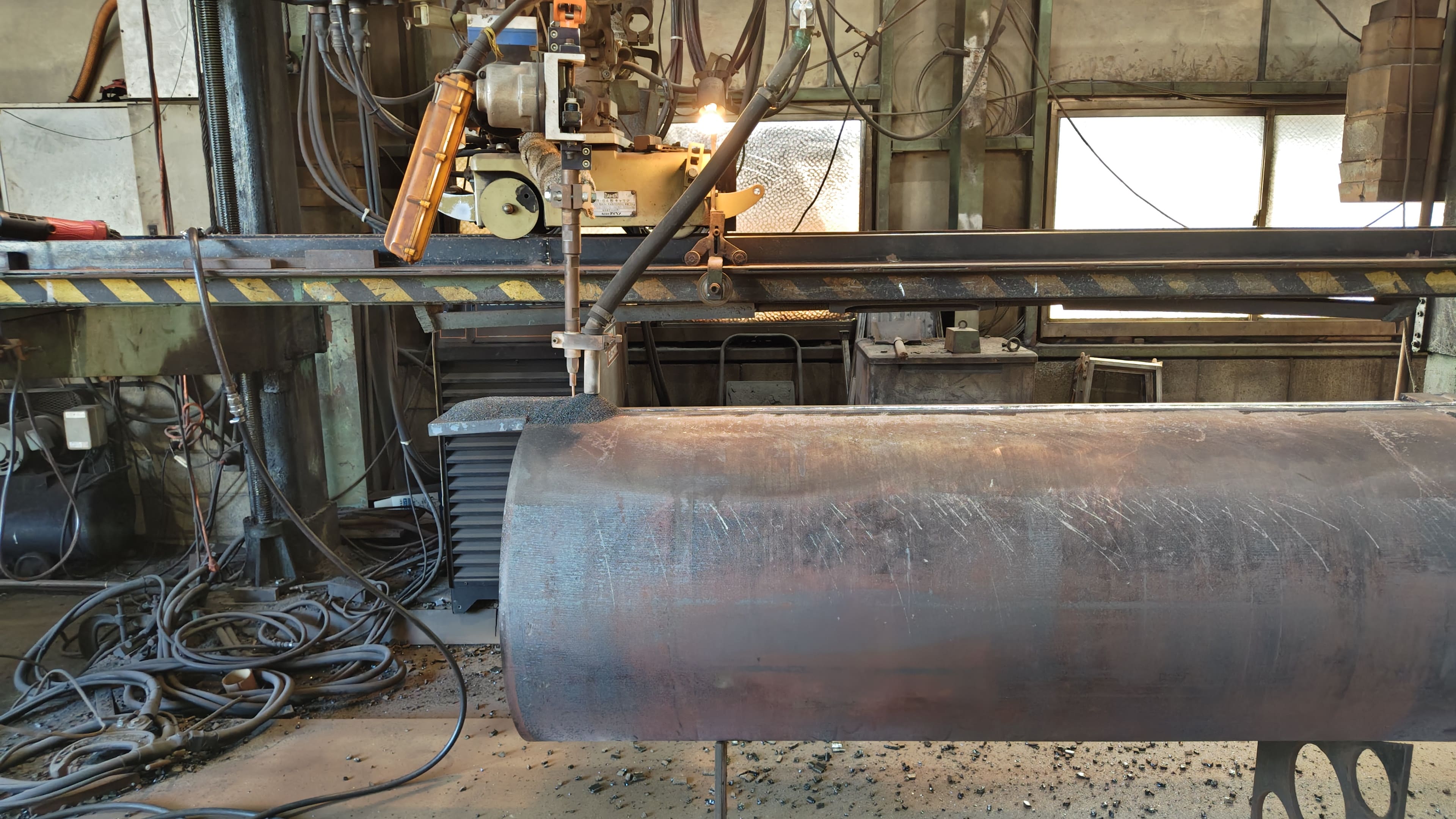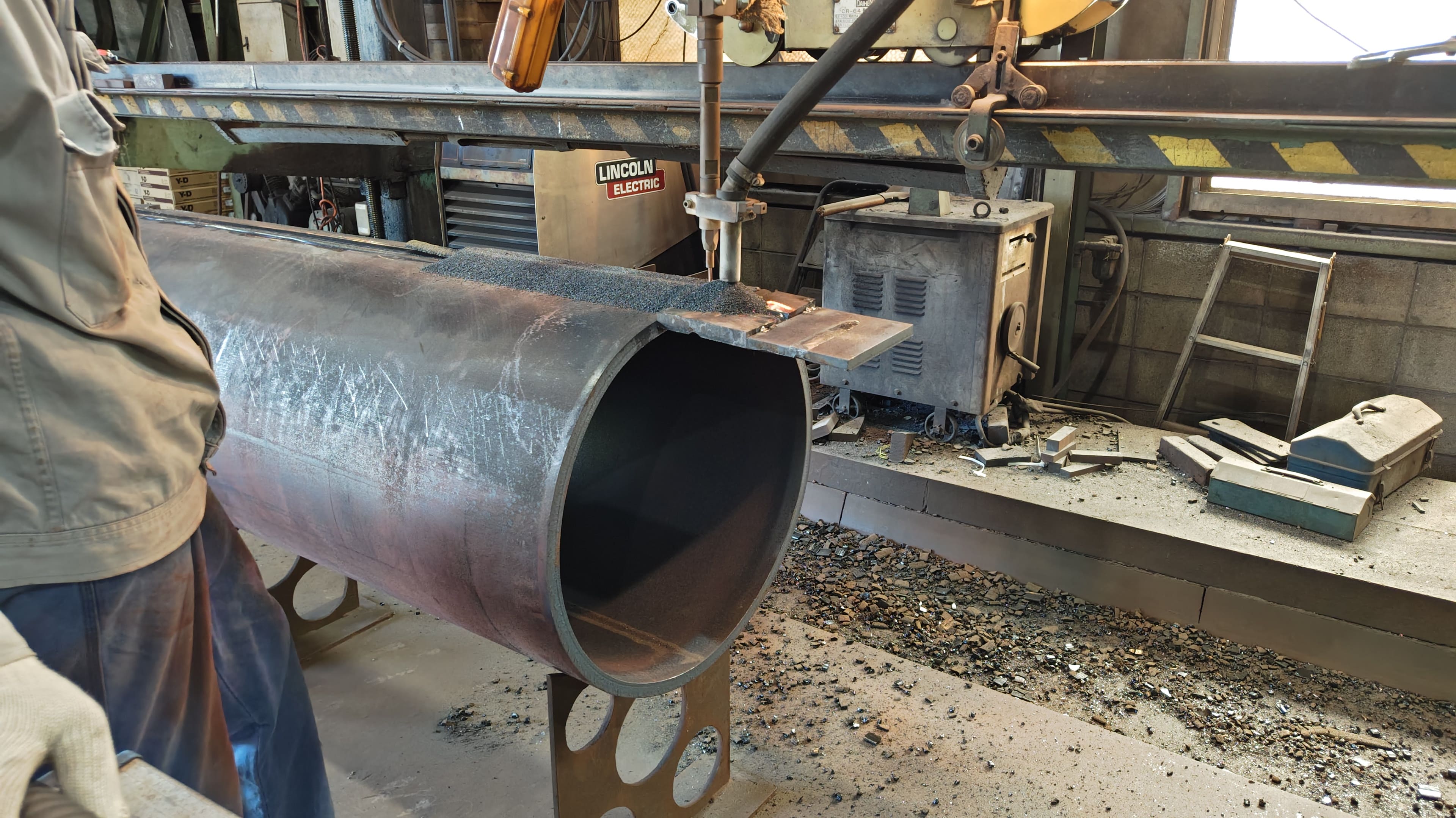 管状に加工した鋼板を溶接し、鋼管に仕上げます。