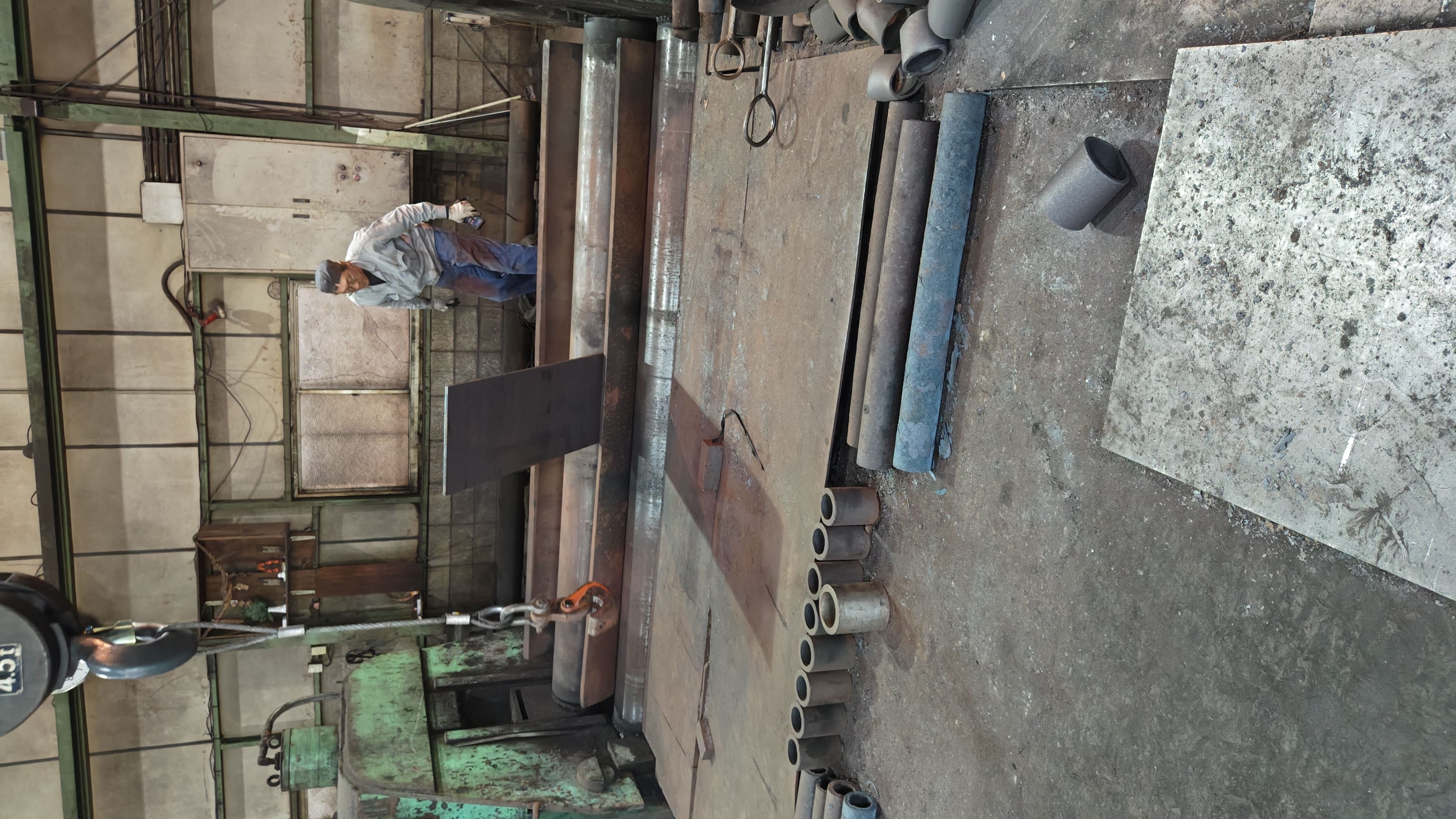 炉に円筒状に加工した鋼材を投入し、形状を整えます。